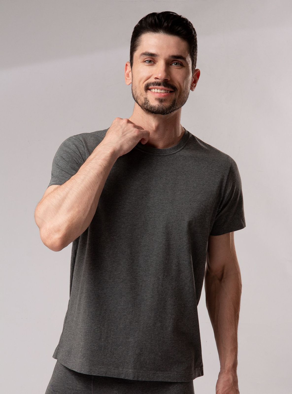 Мужская футболка графитового цвета сшита из хлопка. Изделие сидит на теле аккуратно и естественно, а материал приятен к коже. Универсальная базовая модель для дома, работы и активного образа жизни.
