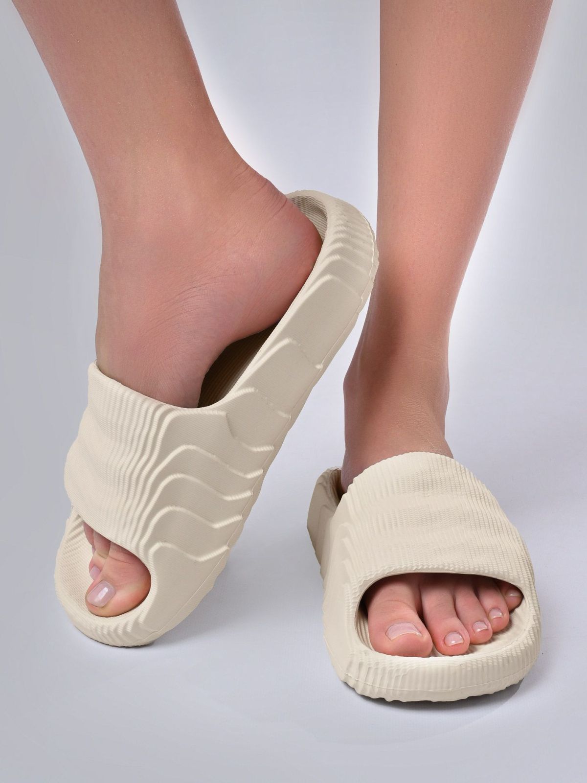 Легкая резиновая подошва повторяет форму стопы человека, что даёт ощущение мягкости и комфорта при хождении на любой поверхности.