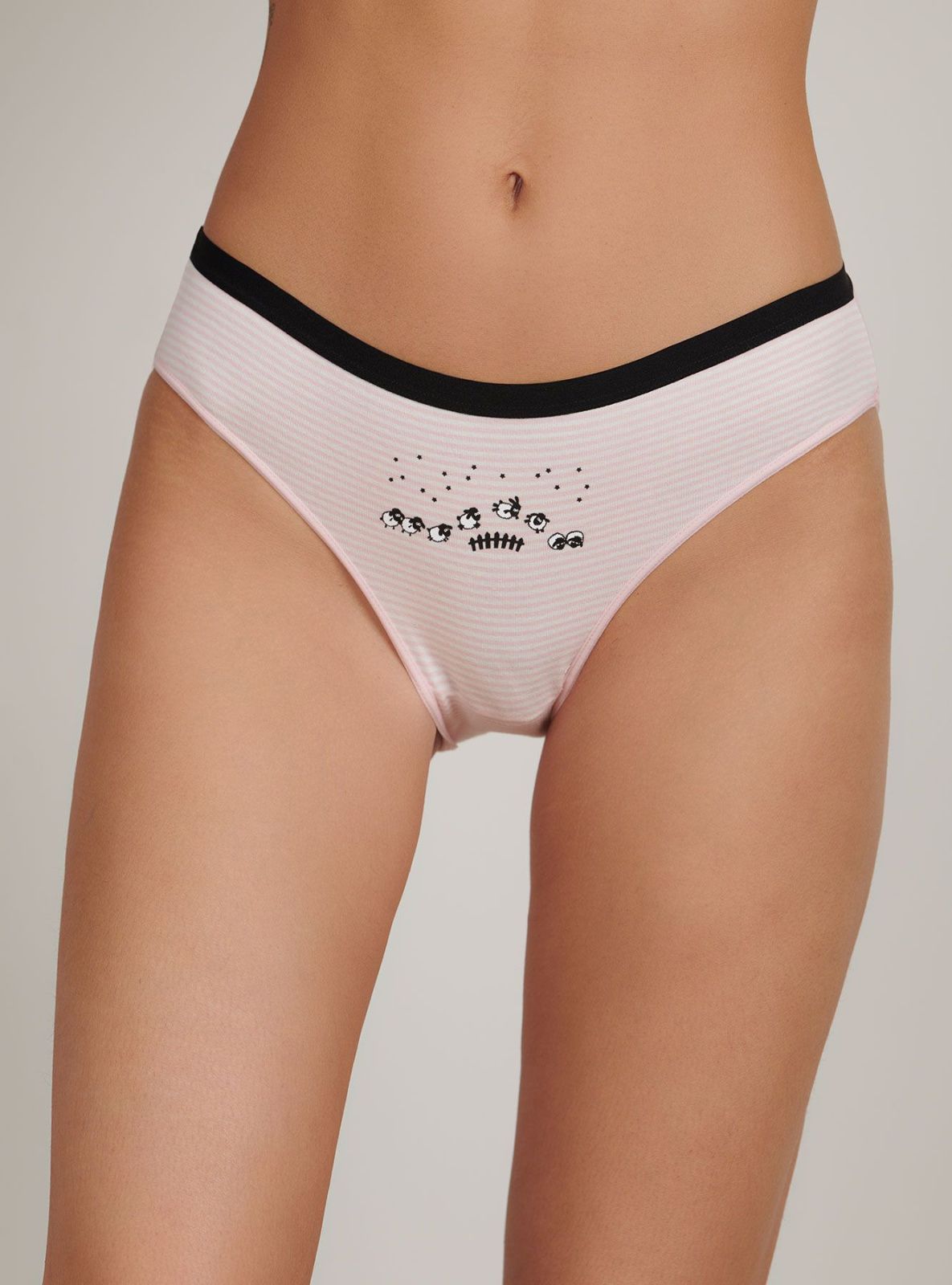 Женские трусы от торговой марки Индефини. Трусы-слипы из хлопка, розового цвета, с принтом, в полоску спереди, на мягкой резинке, средней посадки. Состав: 95% хлопок 5% эластан