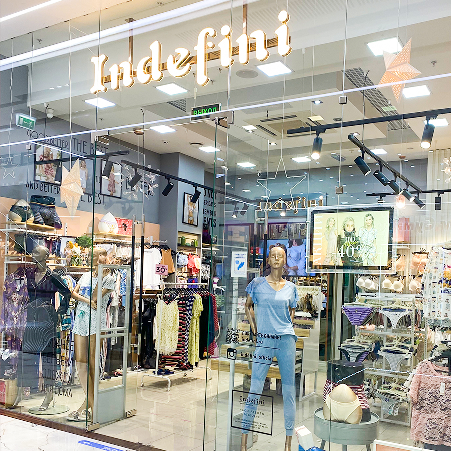 Бренд Indefini широко представлен на всей территории России. В Москве и Московской области функционируют 6 фирменных магазинов, расположенных в крупных торговых центрах, таких как «Мозаика», «Бутово Молл», «Avenue Southwes», «Щёлковский», «Кварц», «Тетрис Молл». Кроме того, более 15 розничных магазинов открыты в других городах России, таких как Санкт-Петербург, Екатеринбург, Пермь и другие.