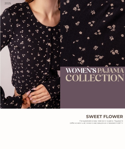 2025 W OM EN’S PAJAM A COLLECTION SWEET FLOWER Погружение в мир нежности и уюта. Подарите себе моменты истинного наслаждения в пижаме indefini