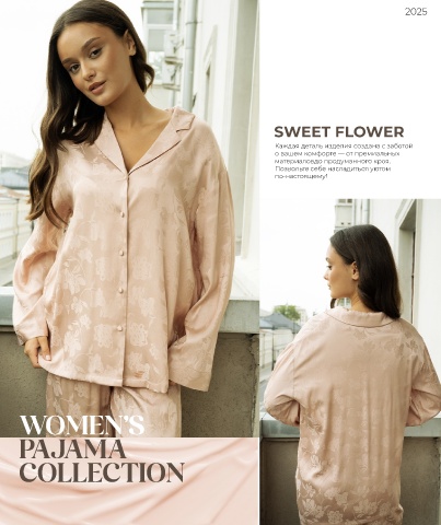 2025 SWEET FLOWER Каждая деталь изделия создана с заботой о вашем комфорте — от премиальных материаловдо продуманного кроя. Позвольте себе насладиться уютом по-настоящему! W OM EN’S PAJAM A COLLECTION