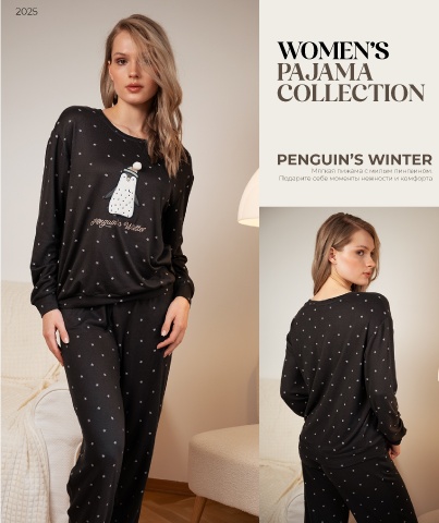 2025 W OM EN’S PAJAM A COLLECTION PENGUIN’S WINTER Мягкая пижама с милым пингвином. Подарите себе моменты нежности и комфорта