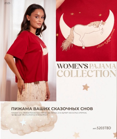2025 W OM EN’S PAJAM A COLLECTION ПИЖАМА ВАШИХ СКАЗОЧНЫХ СНОВ Каждая ночь становится сказкой. Мягкая, как облако, она окутает нежностью и теплом, превращая обычный вечер в волшебный. АРТ.: 5203TBD