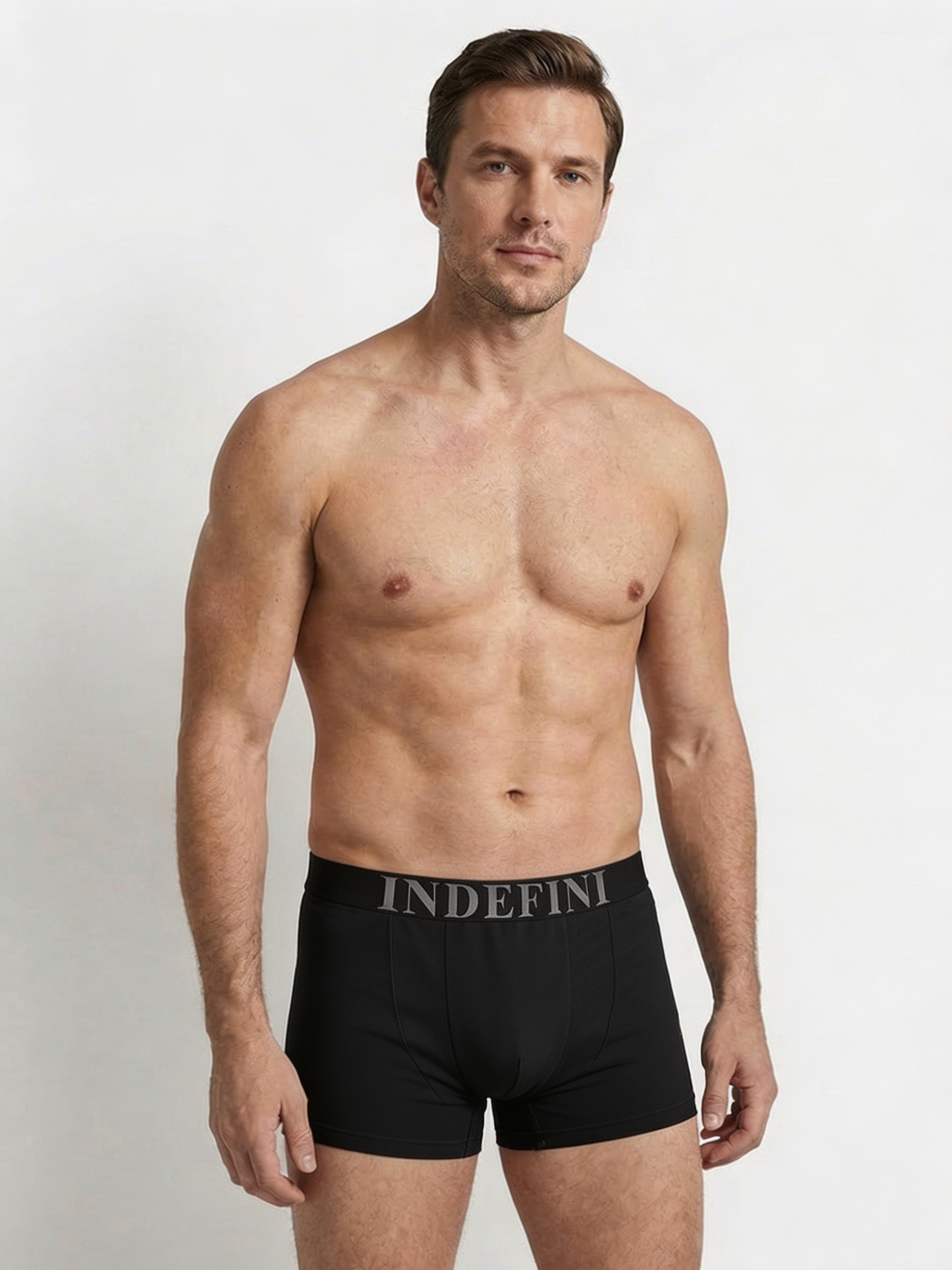 Облегающие мужские трусы черного цвета. Боксеры-брифы сшиты из хлопка — в них не жарко летом и комфортно зимой. В составе минимальное количество эластана, придающее трусам долговечность и прочность. На поясе широкая эластичная резинка для мягкой фиксации на бедрах. Продуманная конструкция исключает натирание и обеспечивает свободу движений. Гульфик без застежки.