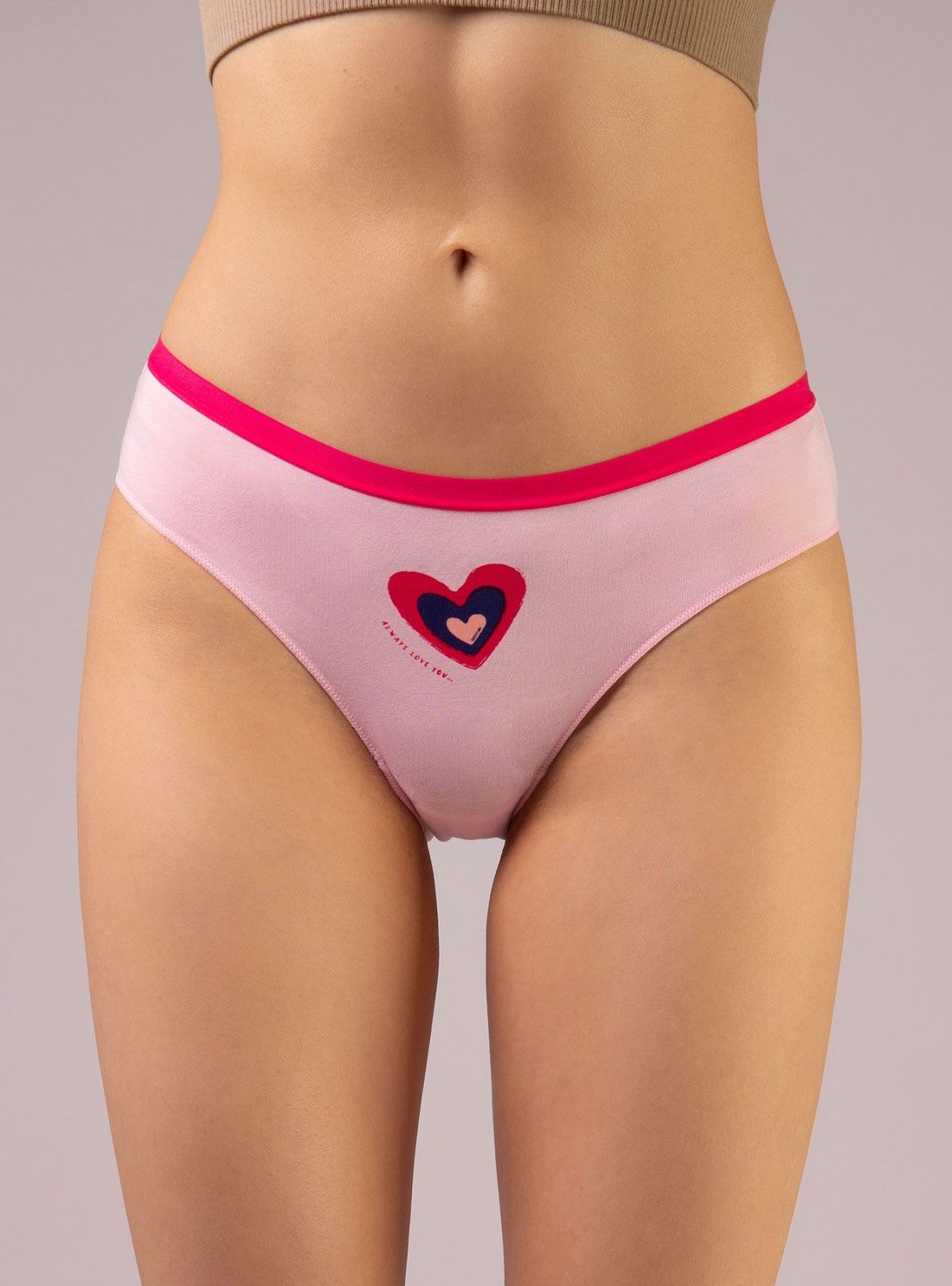 Женские трусы от торговой марки Индефини. Трусы-слипы из бамбука и хлопка, розового цвета, с принтом, с принтом-надписью, средней посадки, на мягкой резинке.