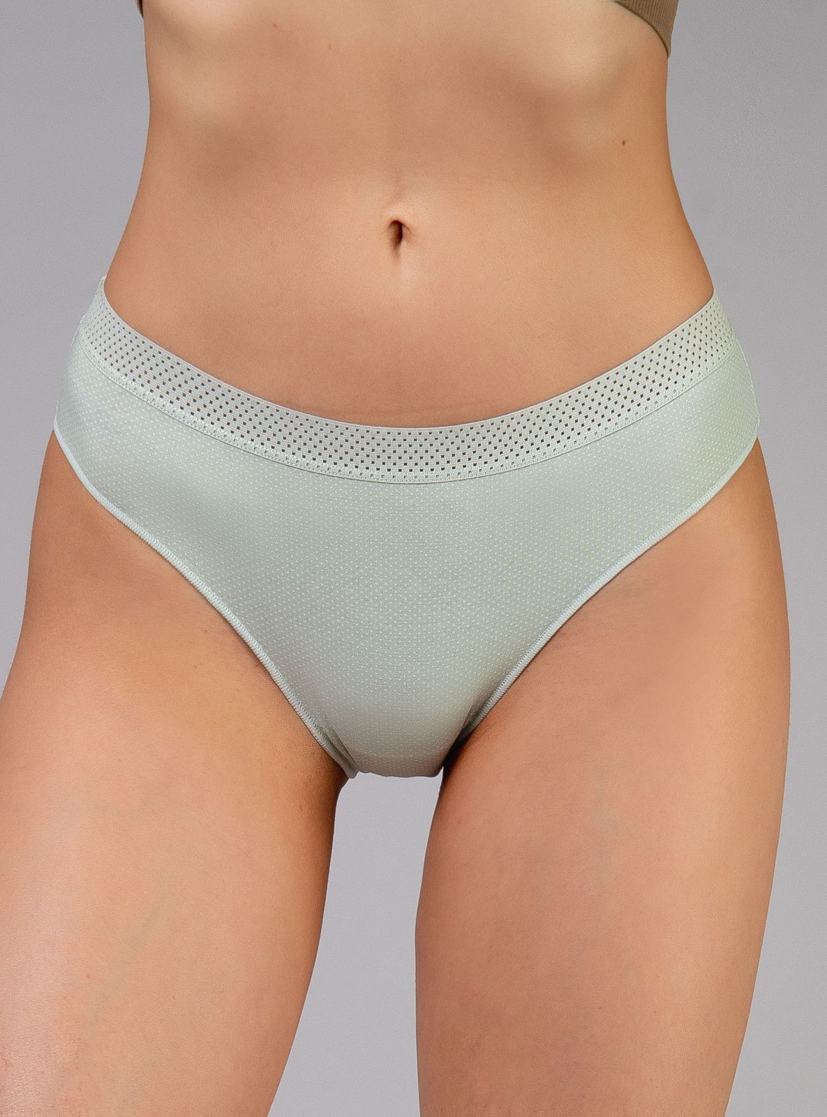 Женские трусы от торговой марки Индефини. Трусы-слипы из хлопка, зеленого цвета, на мягкой резинке, средней посадки.