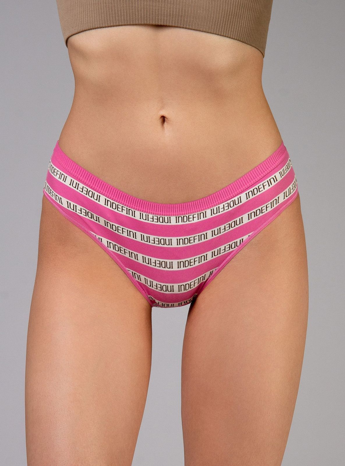 Женские трусы от торговой марки Индефини. Трусы-слипы из хлопка, ярко-розового цвета с принтом, на мягкой резинке, средней посадки.